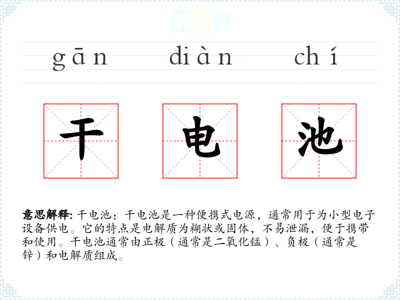 "干电池"的意思解释、干电池是什么意思由翻译网汉语词典查词提供。