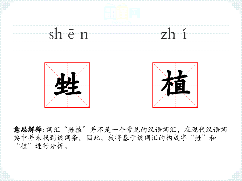 词汇“甡植”并不是一个常见的汉语词汇,在现代汉语词典中并未找到该词条。因此,我将基于该词汇的构成字“甡”和“植”进行分析。