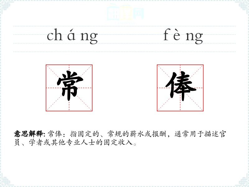 词源:常俸一词源于古代汉语,由“常”(固定的)和“俸”(薪水)组成。