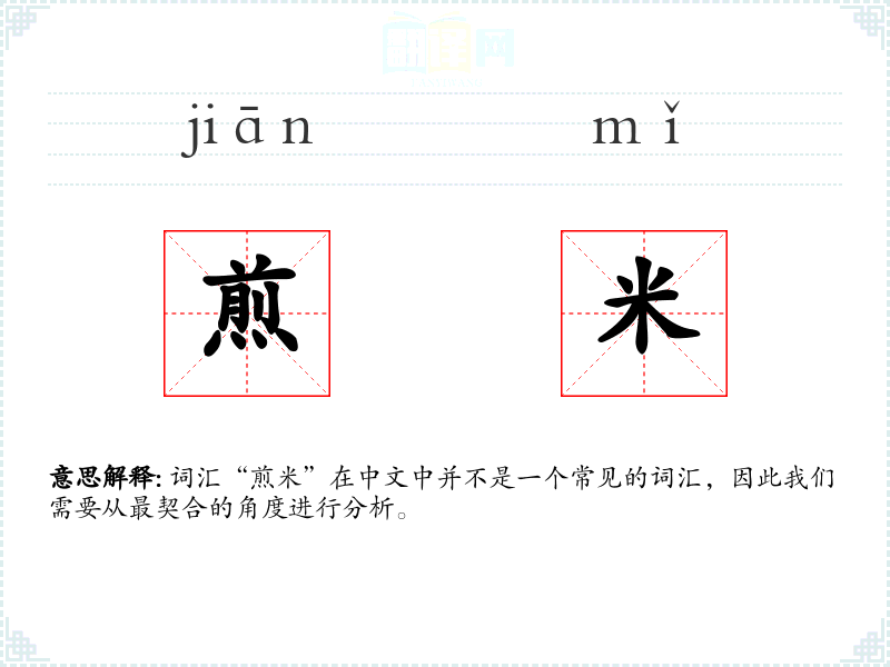 词汇“煎米”在中文中并不是一个常见的词汇,因此我们需要从最契合的角度进行分析。