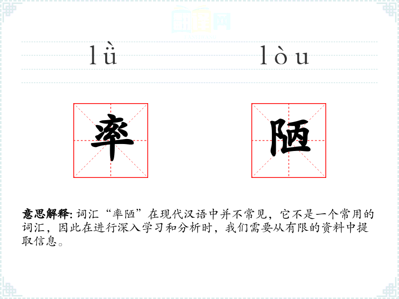由于“率陋”不是一个常用词汇,它在文学、口语、专业领域中的使用非常有限。在古代文献中,可能会用来形容某些物品或建筑的简陋,但在现代语境中几乎不使用。