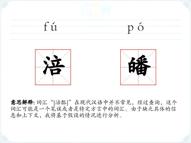 词汇“[涪瓢]”在现代汉语中并不常见,经过查询,这个词汇可能是一个笔误或者是特定方言中的词汇。由于缺乏具体的信息和上下文,我将基于假设的情况进行分析。