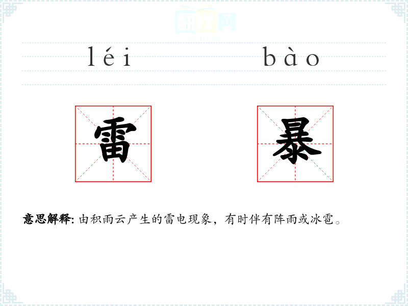 由积雨云产生的雷电现象,有时伴有阵雨或冰雹。