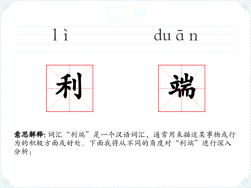 “利端”的字面意思是利益的端点或利益的一方面。在汉语中,它通常指代某事物或行为的正面效果或优点。