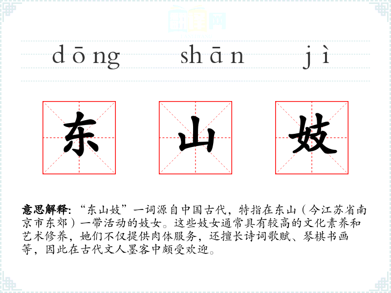 “东山妓”一词的词源直接关联到地理位置“东山”和职业“妓”。随着时间的推移,这个词在现代汉语中已不常用,但在历史文化研究中仍有一定的价值。