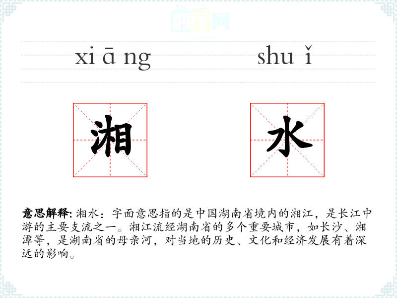 湘水作为一个词汇,不仅代表了地理实体,也承载了丰富的文化和情感意义。在学*语言和表达时,理解和运用这样的词汇,可以增加表达的深度和丰富性。