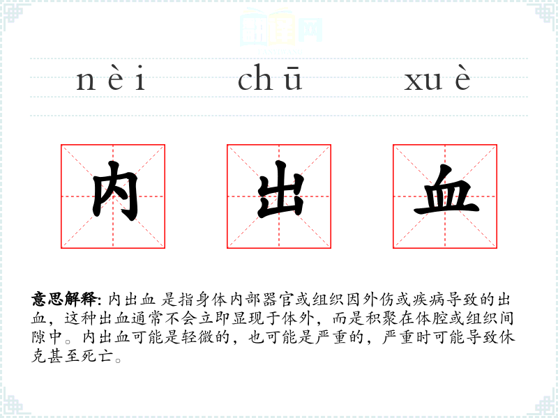 "内出血"的意思解释、内出血是什么意思由翻译网汉语词典查词提供。