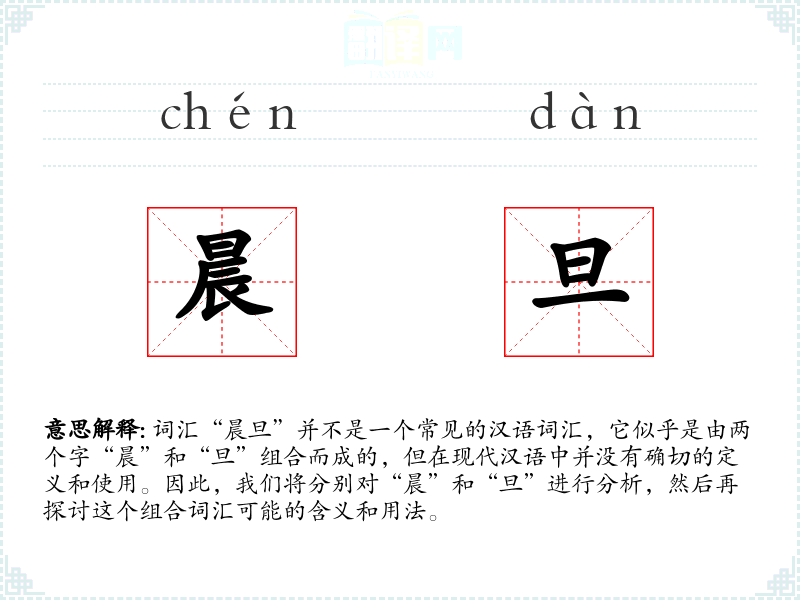 词汇“晨旦”并不是一个常见的汉语词汇,它似乎是由两个字“晨”和“旦”组合而成的,但在现代汉语中并没有确切的定义和使用。因此,我们将分别对“晨”和“旦”进行分析,然后再探讨这个组合词汇可能的含义和用法。