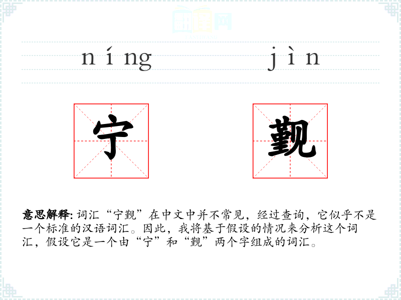 词汇“宁觐”在中文中并不常见,经过查询,它似乎不是一个标准的汉语词汇。因此,我将基于假设的情况来分析这个词汇,假设它是一个由“宁”和“觐”两个字组成的词汇。
