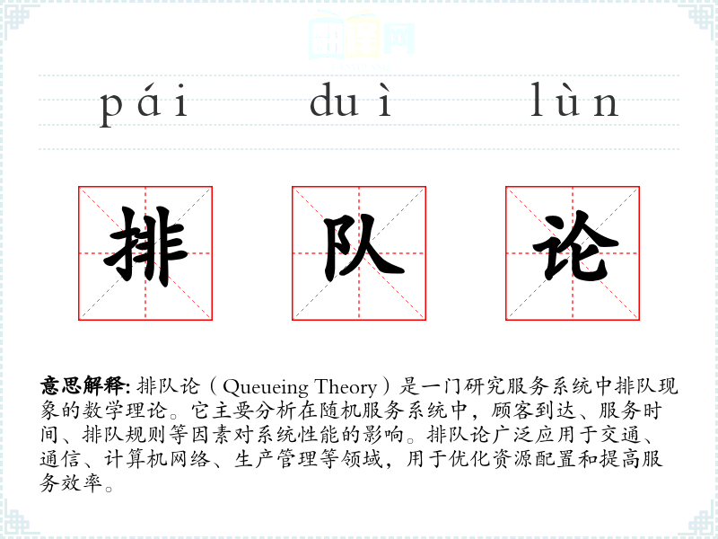- 反义词:无,因为排队论是一个特定的数学理论,没有直接的反义词。