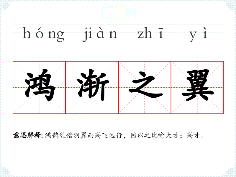 鸿鹄凭借羽翼而高飞远行,因以之比喻大才;高才。