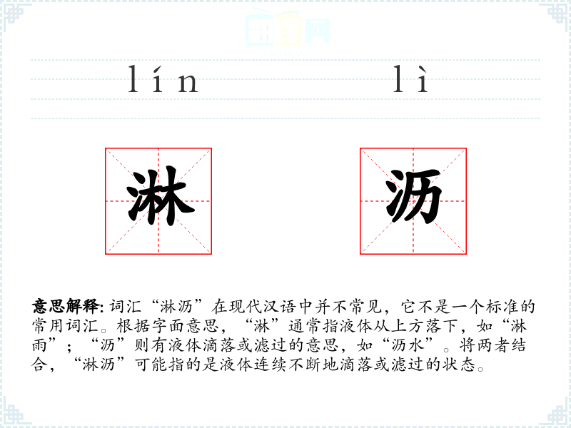 “淋沥”这个词汇虽然在现代汉语中不常见,但它可以用来描述一种液体连续滴落或滤过的状态。在文学创作中,它可以用来创造特定的意象和氛围。在语言学习和表达中,了解这样的词汇可以丰富我们的词汇量,但在日常交流中可能不会经常使用。
