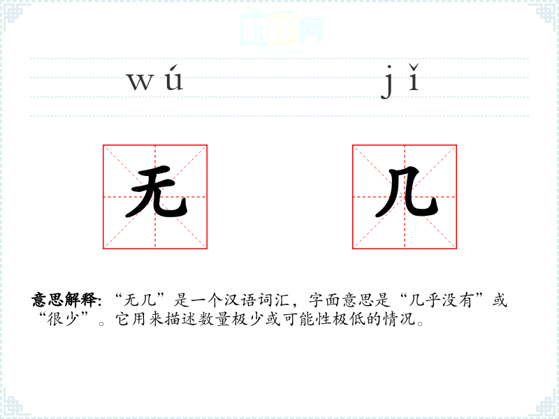 “无几”是一个汉语词汇,字面意思是“几乎没有”或“很少”。它用来描述数量极少或可能性极低的情况。