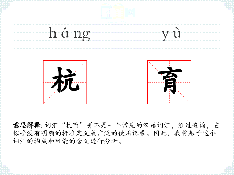 “杭育”这个词汇由两个音节组成,没有明确的字面意思或基本含义,因为它不是一个标准词汇。