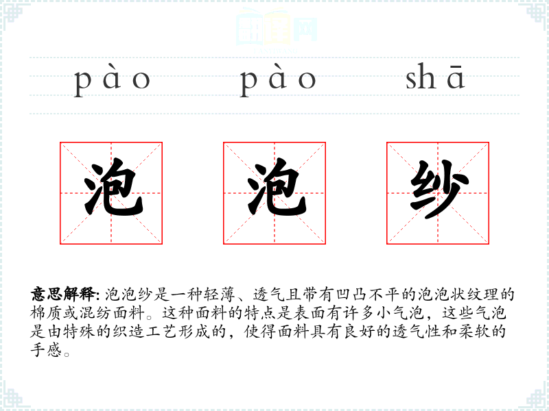 "泡泡纱"的意思解释、泡泡纱是什么意思由翻译网汉语词典查词提供。