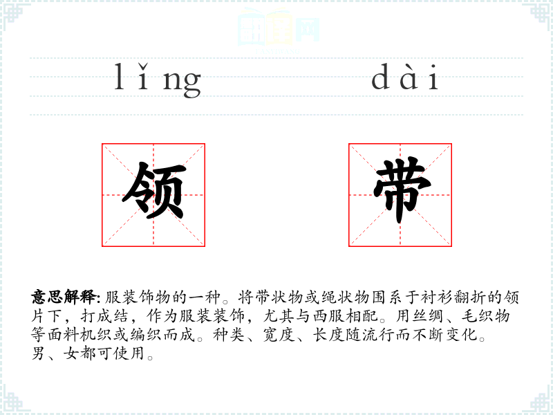 领带的分字解释