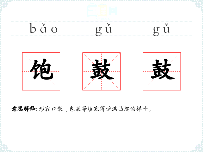 形容口袋﹑包裹等填塞得饱满凸起的样子。