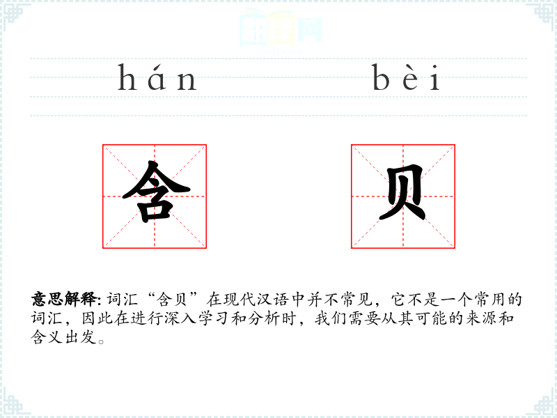 词汇“含贝”在现代汉语中并不常见,它不是一个常用的词汇,因此在进行深入学*和分析时,我们需要从其可能的来源和含义出发。