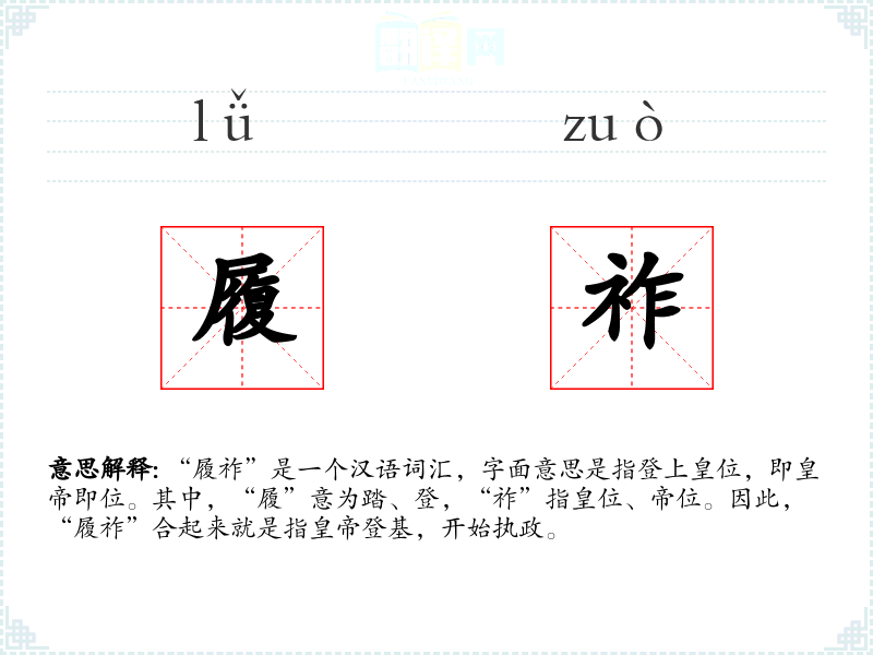 想象一幅画面:金碧辉煌的宫殿中,新帝身着龙袍,缓缓登上宝座,群臣跪拜,钟鼓齐鸣。这样的场景结合了视觉的庄严和听觉的宏大,完美地诠释了“履祚”的含义。