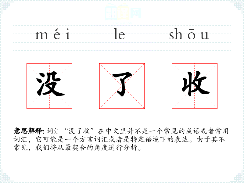 由于“没了收”不是一个标准的中文词汇,我们无法给出一个确切的基本定义。它可能是某个地区方言中的表达,或者是特定行业或群体中的术语。