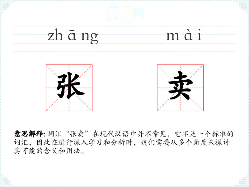 词汇“张卖”在现代汉语中并不常见,它不是一个标准的词汇,因此在进行深入学习和分析时,我们需要从多个角度来探讨其可能的含义和用法。