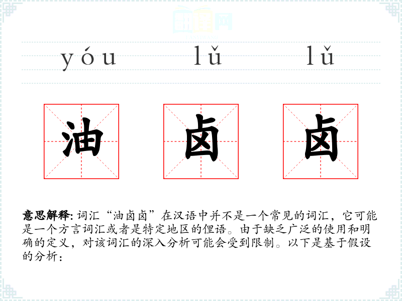 "油卤卤"的意思解释、油卤卤是什么意思由翻译网汉语词典查词提供。