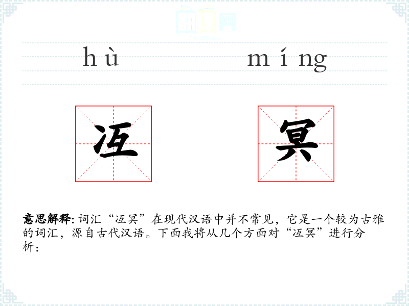 词汇“冱冥”在现代汉语中并不常见,它是一个较为古雅的词汇,源自古代汉语。下面我将从几个方面对“冱冥”进行分析: