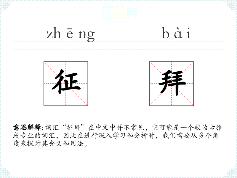 “征拜”一词可能源自古代汉语,其使用在现代汉语中已经较少见,更多出现在历史文献或古风文学中。