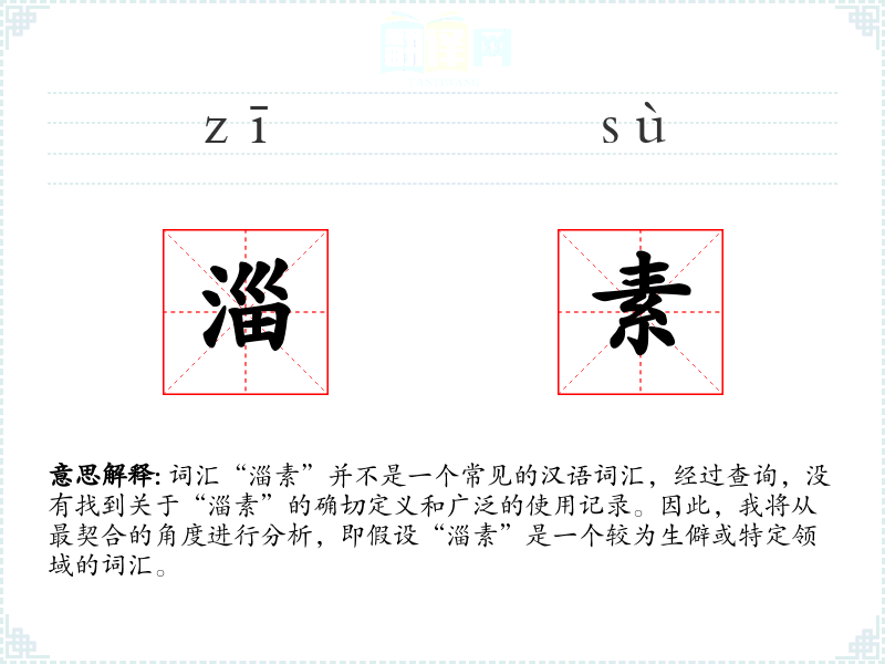 由于“淄素”不是一个标准词汇,我们无法给出确切的基本定义。如果它出现在某个特定文献或专业领域中,可能需要查阅相关资料来确定其含义。