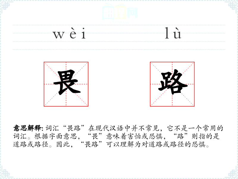 “畏路”的词源较为直接,由“畏”和“路”两个基本汉字组成。在古代文献中,类似的表达可能更为常见,但随着语言的发展,这类词汇的使用逐渐减少。