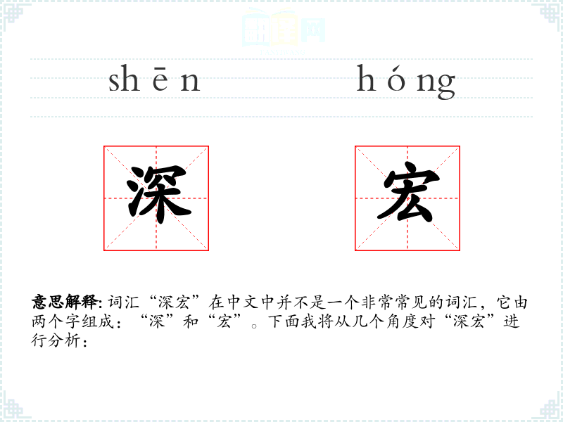 词汇“深宏”在中文中并不是一个非常常见的词汇,它由两个字组成:“深”和“宏”。下面我将从几个角度对“深宏”进行分析: