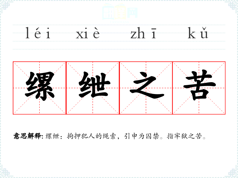 :拘押犯人的绳索,引申为囚禁。指牢狱之苦。