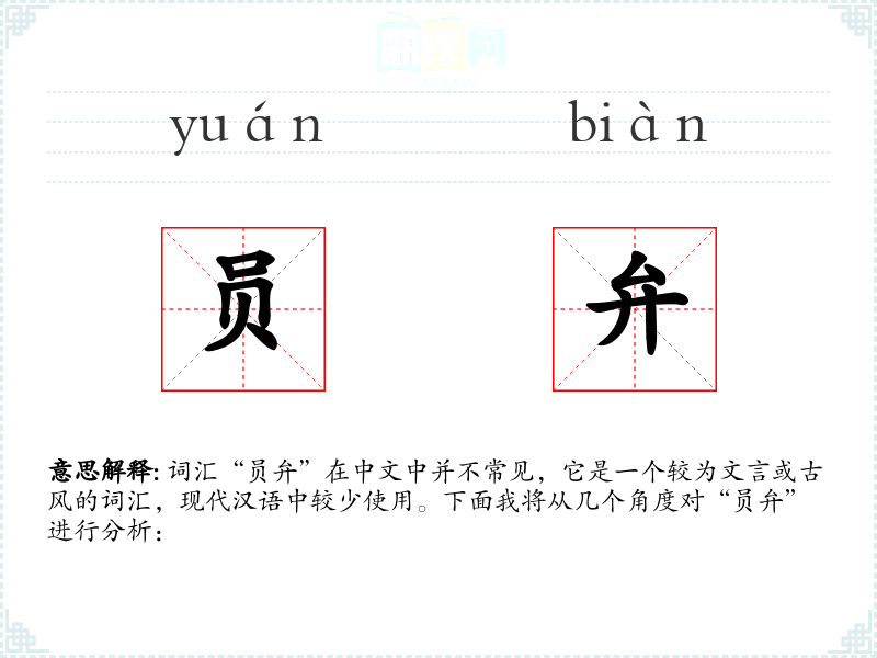 词汇“员弁”在中文中并不常见,它是一个较为文言或古风的词汇,现代汉语中较少使用。下面我将从几个角度对“员弁”进行分析: