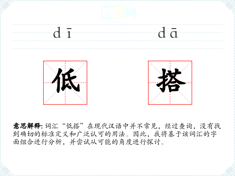 由于“低搭”不是一个常用词汇,其在不同语言或文化中的对应词汇难以确定。