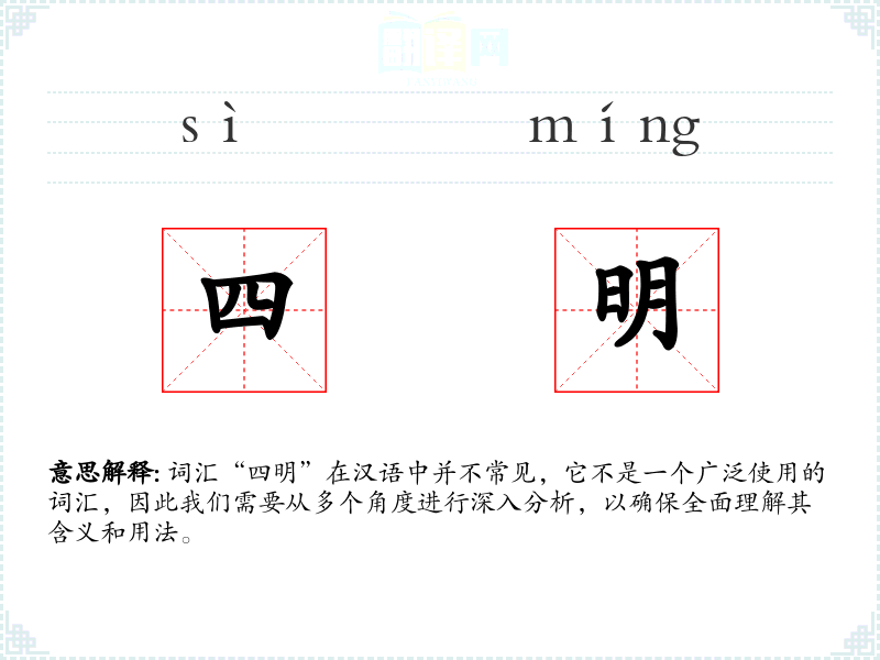 词汇“四明”在汉语中并不常见,它不是一个广泛使用的词汇,因此我们需要从多个角度进行深入分析,以确保全面理解其含义和用法。