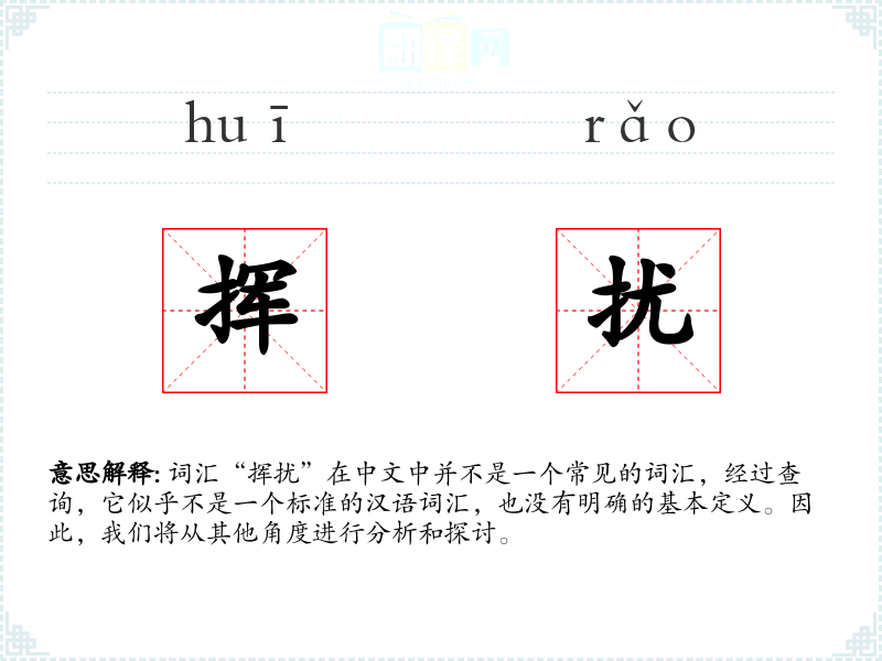 由于“挥扰”不是一个标准的汉语词汇,我们无法提供其字面意思和基本含义。