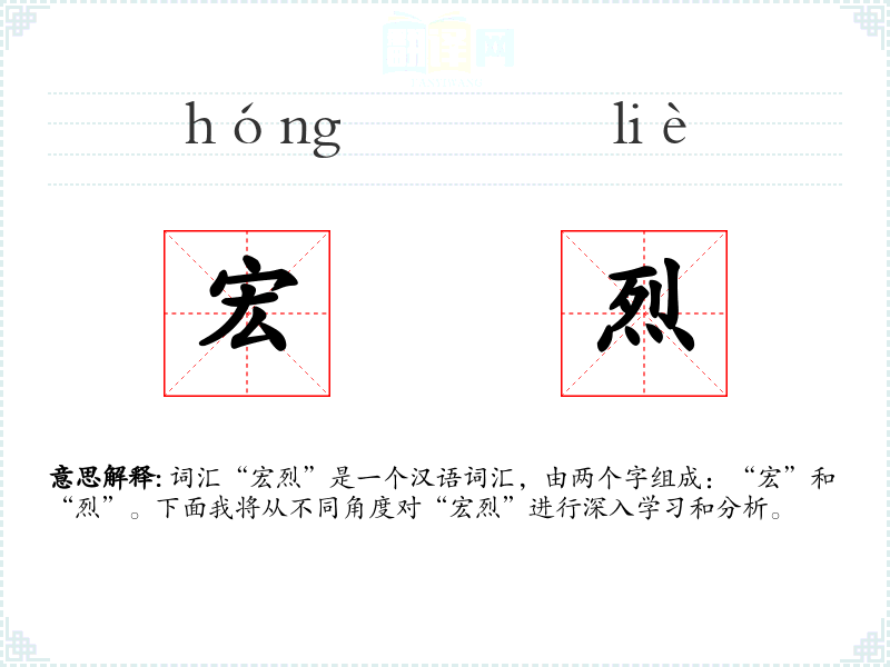 - 词源:“宏”和“烈”都是古代汉语中常用的词汇,各自有着悠久的历史。