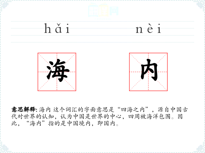 "海内"的意思解释、海内是什么意思由翻译网汉语词典查词提供。
