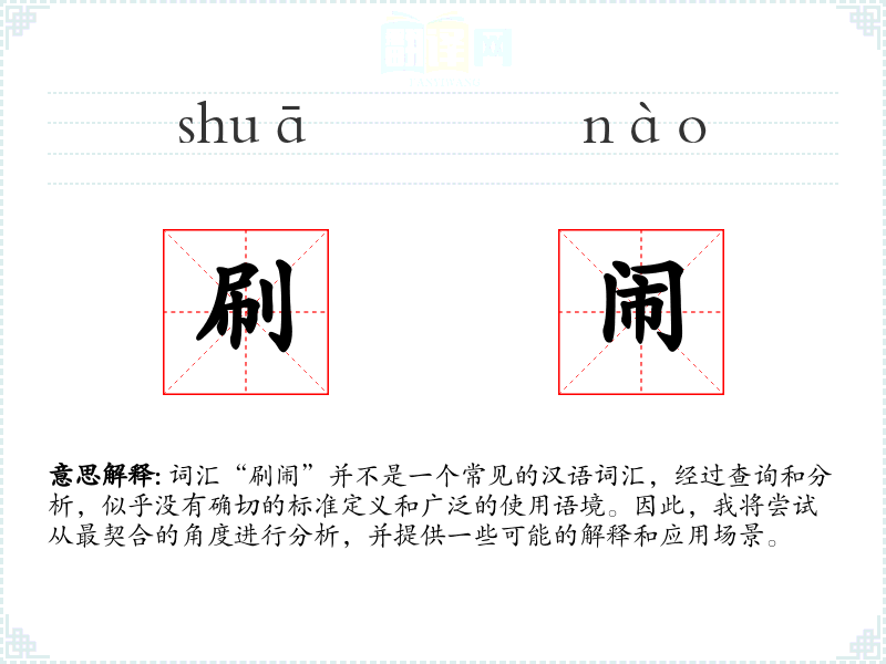 结合这两个字,我们可以推测“刷闹”可能指的是通过某种方式引起喧哗或骚动的行为。