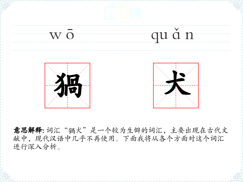 词汇“猧犬”是一个较为生僻的词汇,主要出现在古代文献中,现代汉语中几乎不再使用。下面我将从各个方面对这个词汇进行深入分析。
