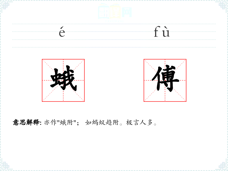 亦作"蛾附"; 如蚂蚁趋附。极言人多。