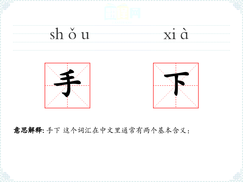 在**传统文化中,“手下”常带有一定的等级和服从意味,反映了社会结构中的上下级关系。