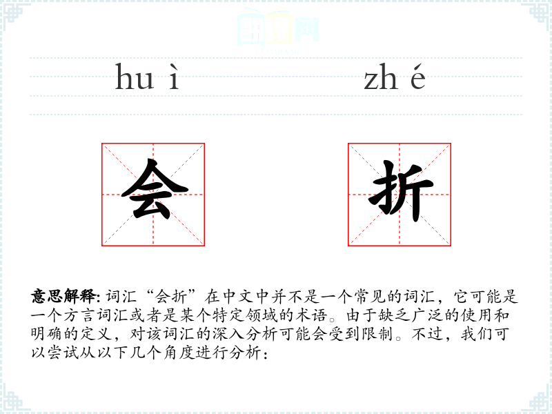 总的来说,由于“会折”不是一个标准的中文词汇,对其进行深入分析存在一定的困难。如果能够提供更多的上下文和信息,可能会更有助于理解该词汇的含义和用法。