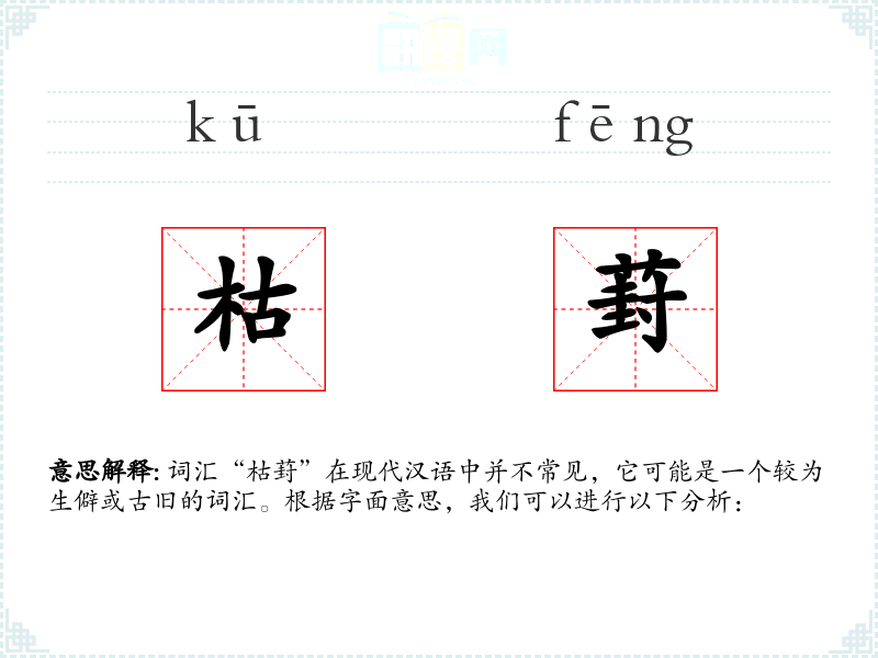 词汇“枯葑”在现代汉语中并不常见,它可能是一个较为生僻或古旧的词汇。根据字面意思,我们可以进行以下分析: