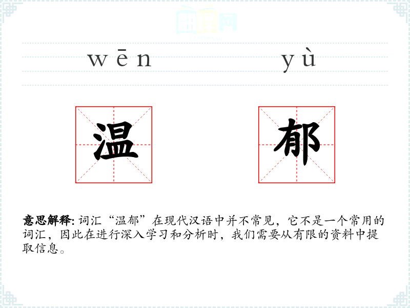 词汇“温郁”在现代汉语中并不常见,它不是一个常用的词汇,因此在进行深入学习和分析时,我们需要从有限的资料中提取信息。