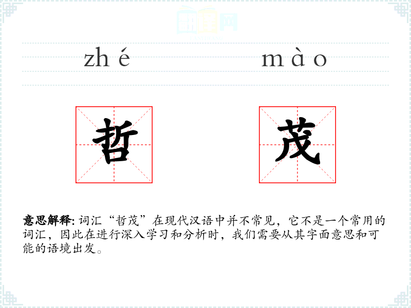 词汇“哲茂”在现代汉语中并不常见,它不是一个常用的词汇,因此在进行深入学*和分析时,我们需要从其字面意思和可能的语境出发。