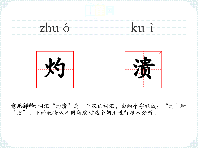 词汇“灼溃”是一个汉语词汇,由两个字组成:“灼”和“溃”。下面我将从不同角度对这个词汇进行深入分析。
