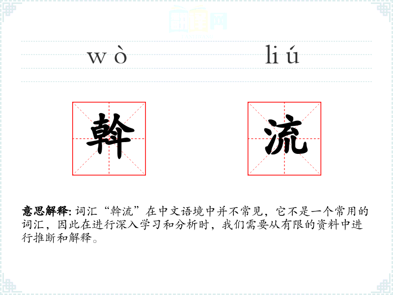 词汇“斡流”在中文语境中并不常见,它不是一个常用的词汇,因此在进行深入学*和分析时,我们需要从有限的资料中进行推断和解释。