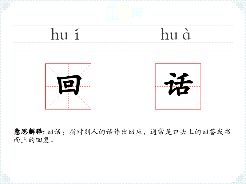 回话一词源于汉语,由“回”和“话”两个字组成。在古代汉语中,“回”有返回、回应的意思,“话”则指言语。随着语言的发展,“回话”逐渐固定为表示回应的词汇。