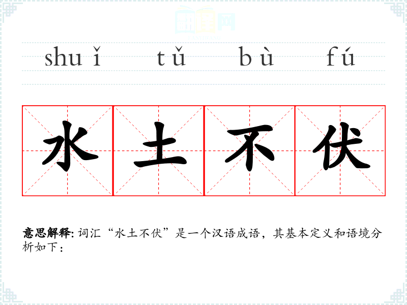 词汇“水土不伏”是一个汉语成语,其基本定义和语境分析如下: